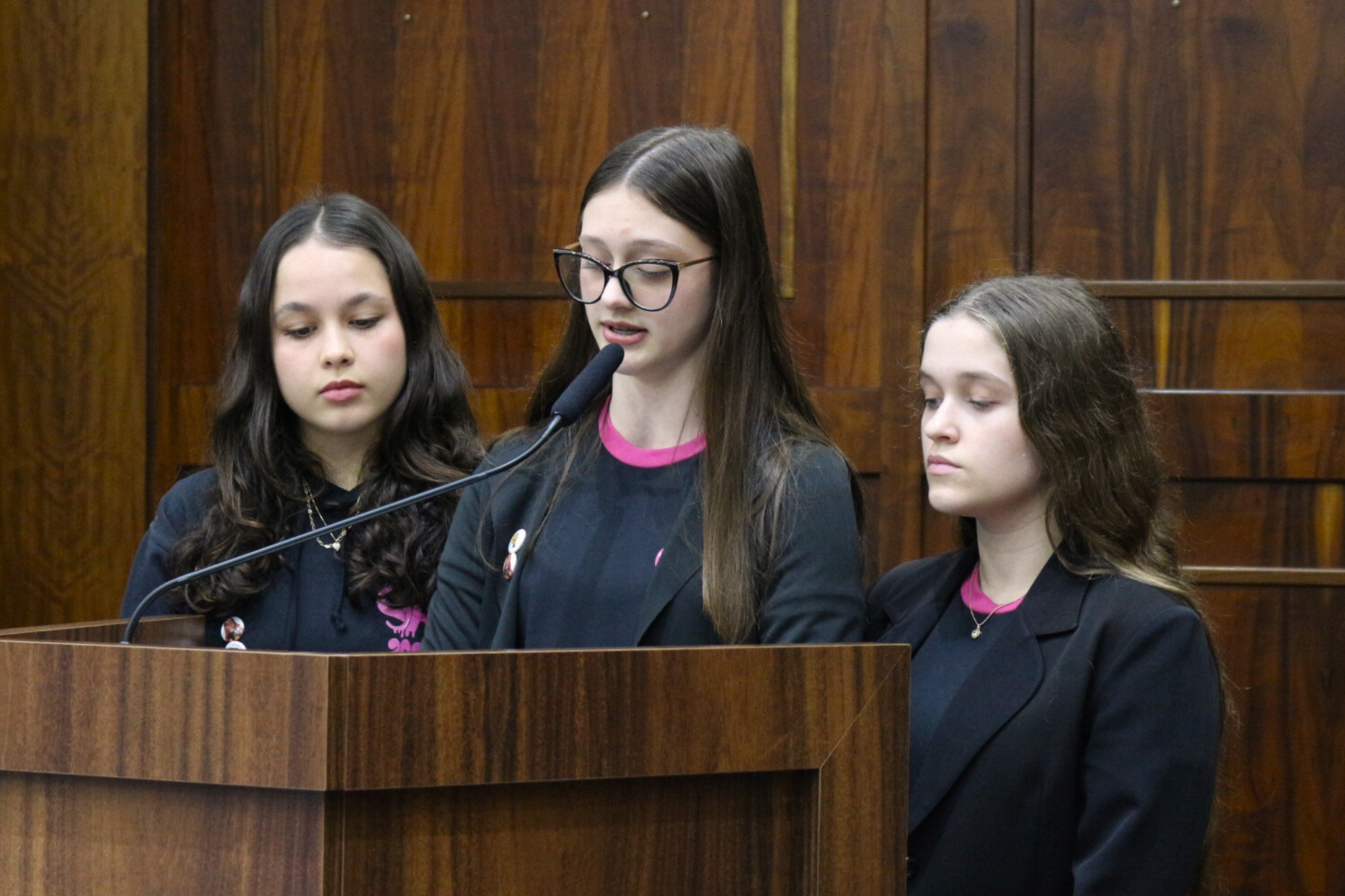 alunas Isadora Tressoldi, Manueli Olbermann e Tailise Maccalli, do 9º