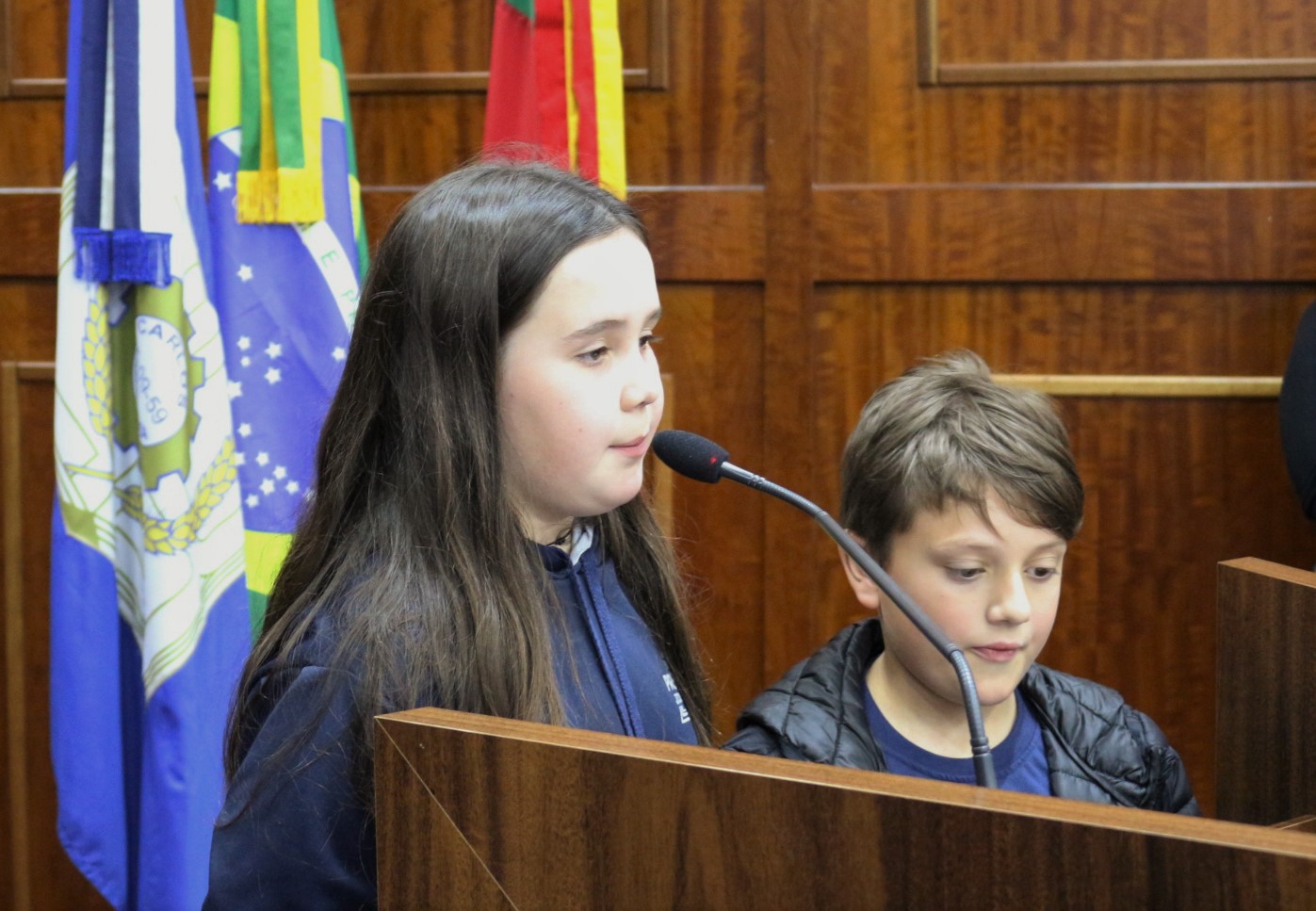 Alunos Laura e Enzo na Tribuna Popular