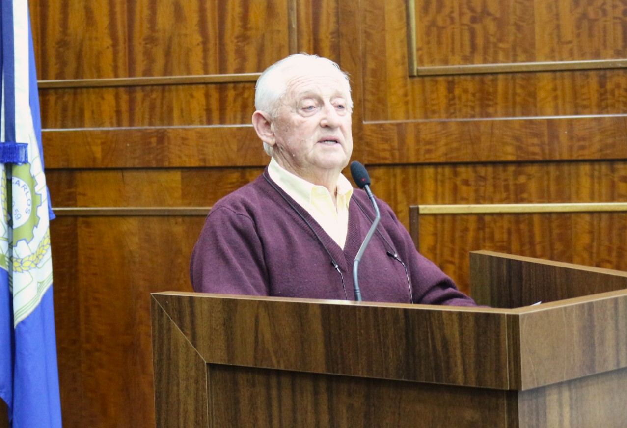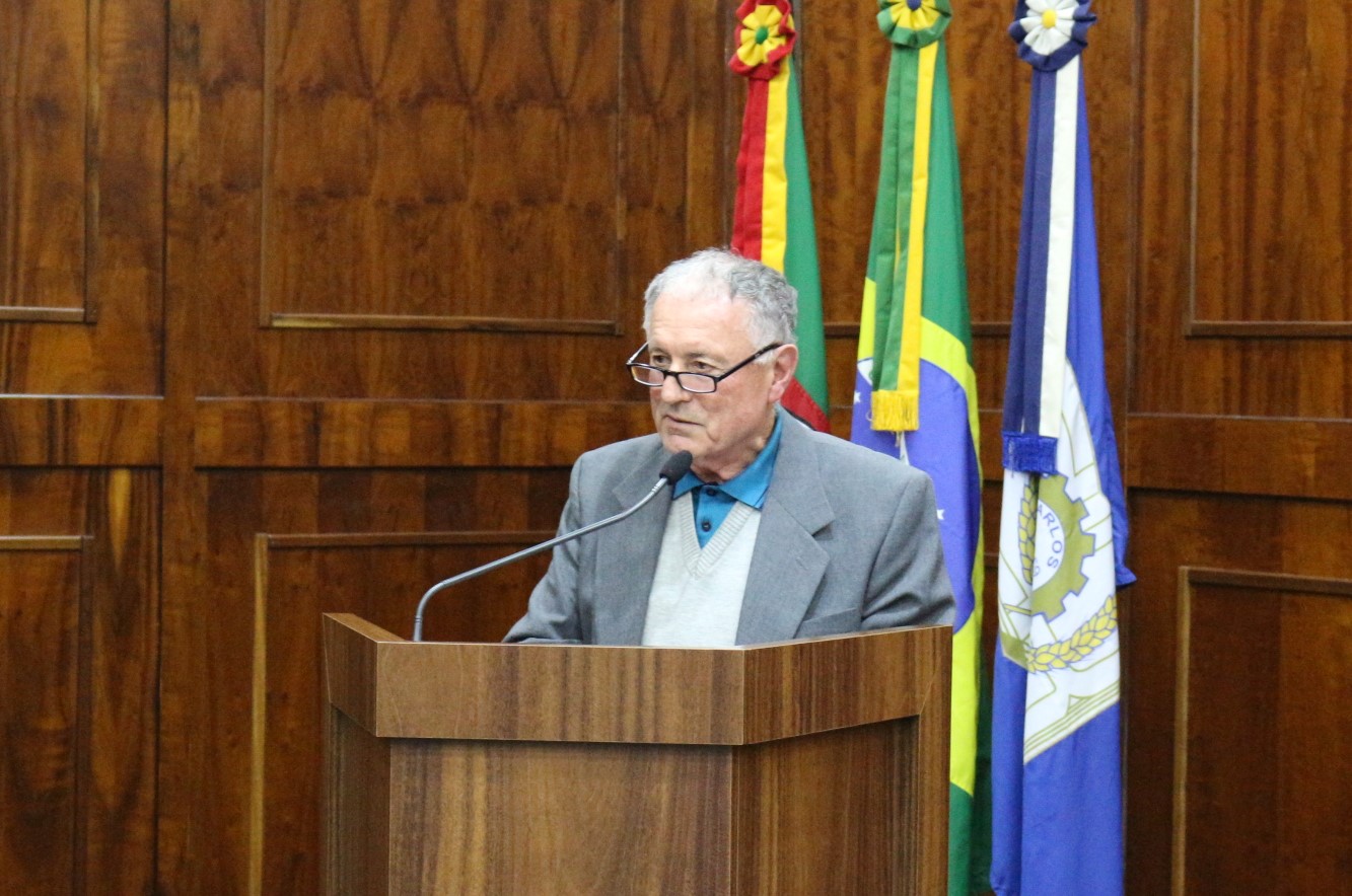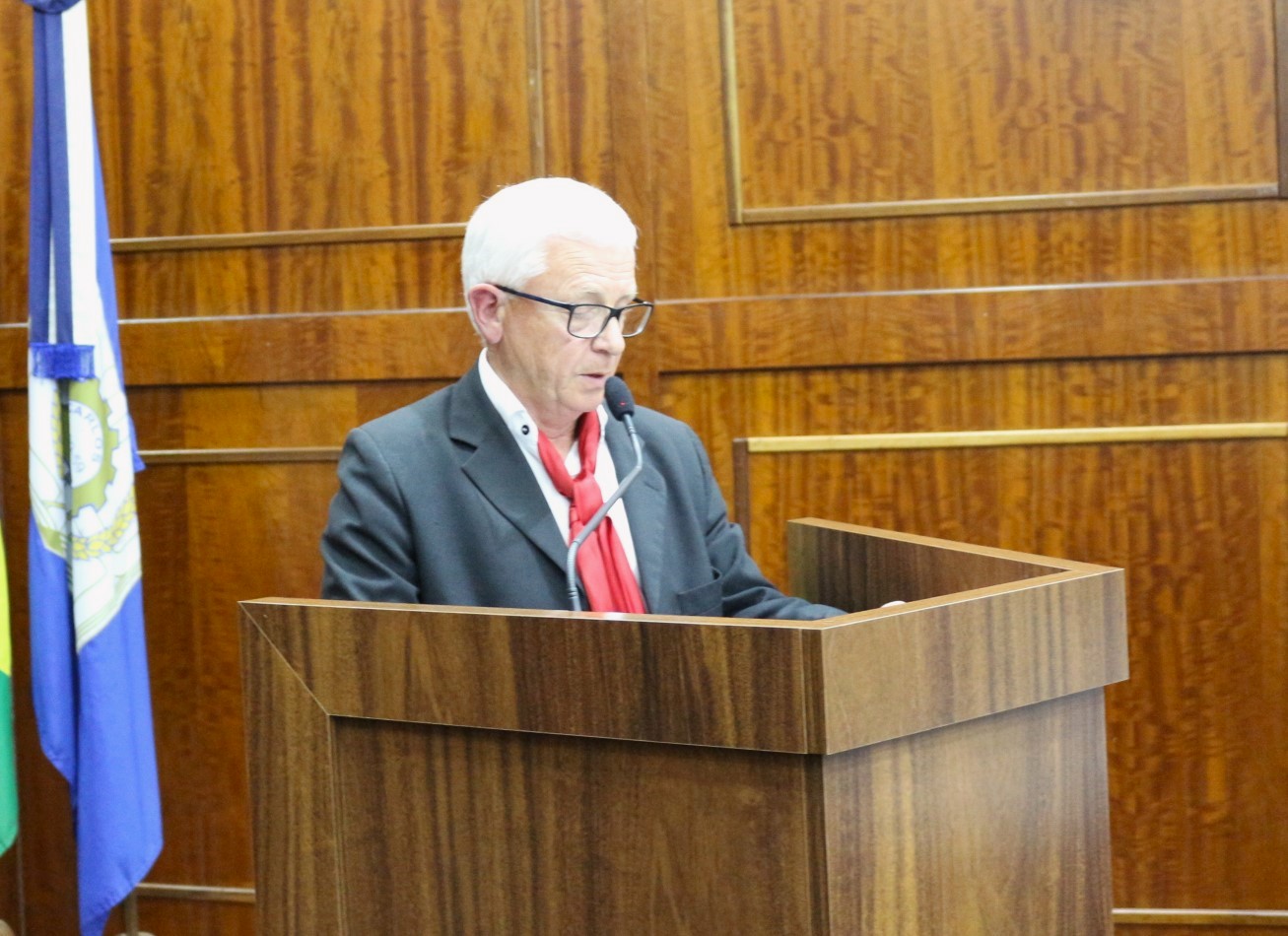 Vereador Ari Ársego na tribuna